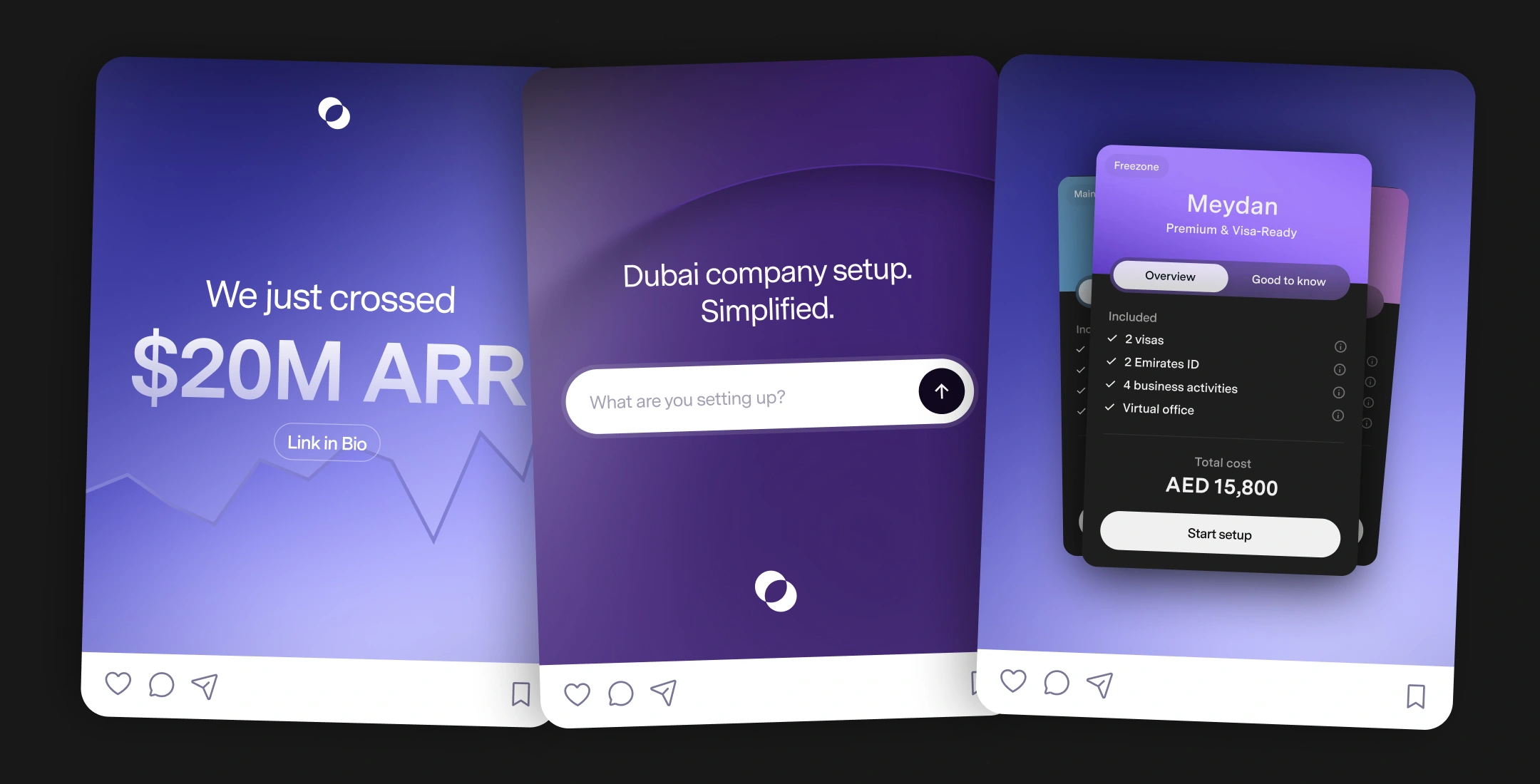 Dubai is one of the fastest-moving cities on the planet, and Dubai.new needed a brand that matched that energy. We built a visual identity that feels native to the future — deep violet tones, clean type, and an interface language that makes complex processes feel effortless. The kind of brand that makes you feel like you're already ahead just by using it.